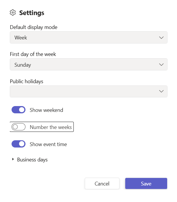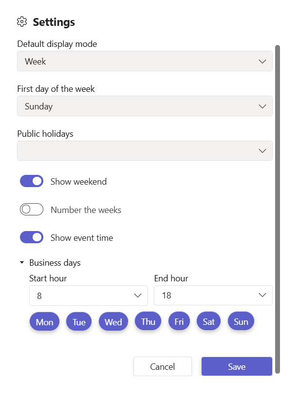 Here you can personalize the view of your Calendar Pro to match your Business days.