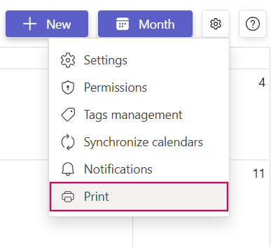 Use the print settings and the Teams zoom to change the format of the print. You can choose to print or export your calendar view to a PDF file.