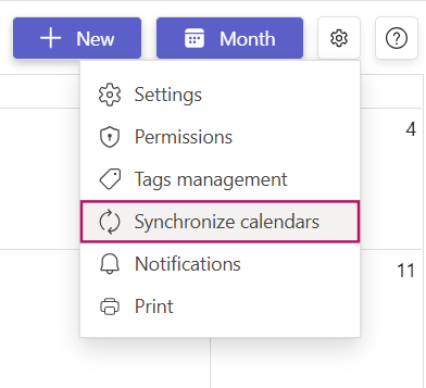 Click on the Settings button ⚙️ next to the 'Month' button > select 'Synchronize Calendars'.