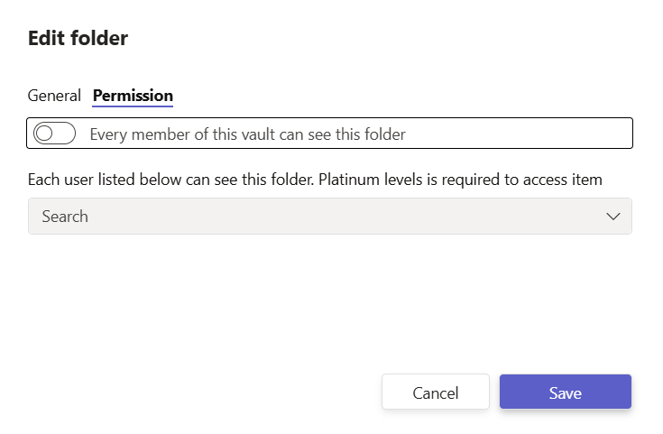 Manage access at the folder level for more granular control. For example, you might restrict access to HR-related credentials to only the HR team.